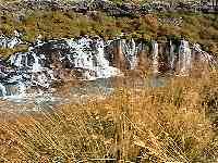 Udsigt fra vandfaldene mod isgletsjeren. |